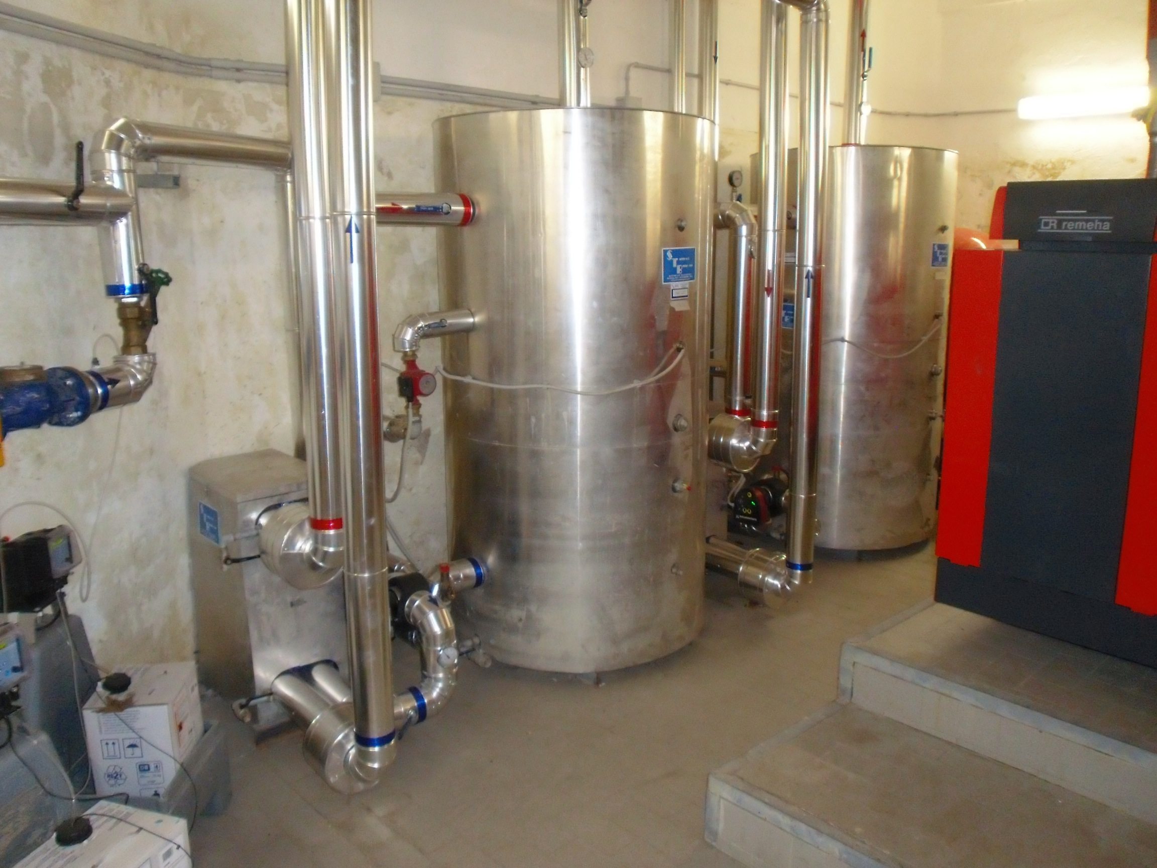 Installazione nuovo sistema di produzione ed accumulo di acqua calda sanitaria costituito da due preparatori rapidi da 1.000 litri caiscuno.